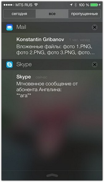Панель уведомлений была осторожно переработана. Во-первых, из неё исчезла абсолютно бесполезная вкладка «Пропущенные». Большинство оповещений, хранящихся в этой панели, так и так являлись непрочитанными или ожидающими вашей реакции. Радует, что в Apple готовы исправлять свои собственные ошибочные нововведения. Жаль только, что этого приходится ждать целый год.